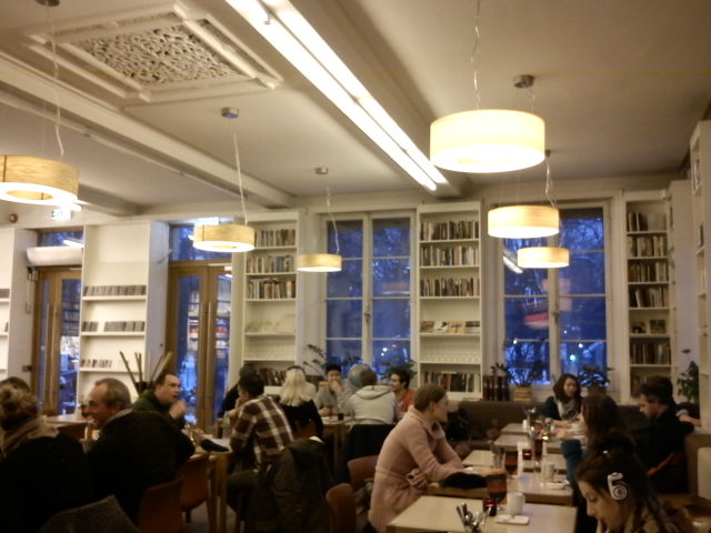 Efter att ha viftat oss varma med den svenska flaggan och hejat fram Helena Ekholm till en fjärde plats i skidskytte-tävlingen på Holmenkollen vänder vi tillbaka mot stan. Vi hamnar efterlängtat på Litteraturhuset och stannar en stund, njuter av atmosfären i Kafé Oslo, med blickavstånd mot bokhandeln.